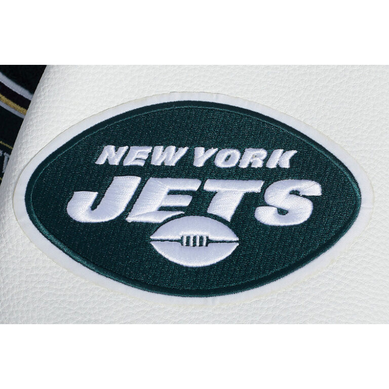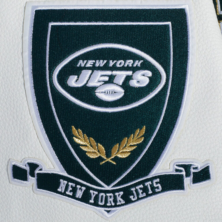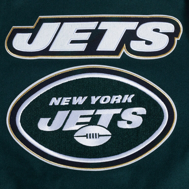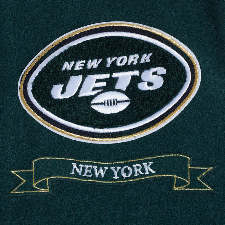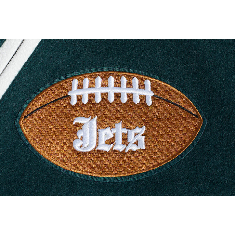 ✔ Embroidery: Detailed “Jets” logo, team patches, and varsity-style accents