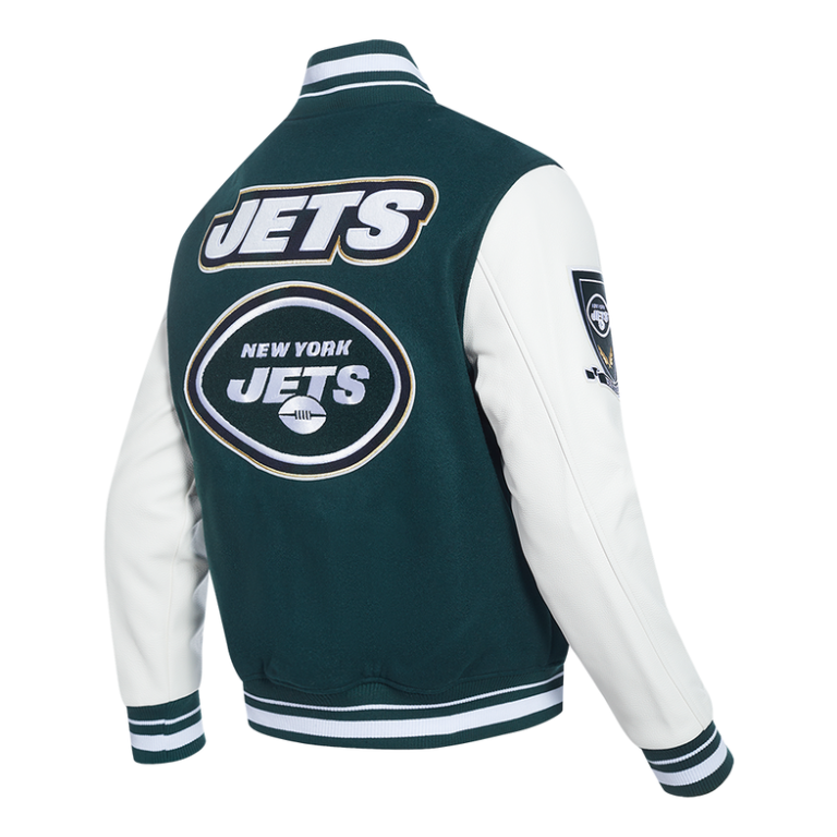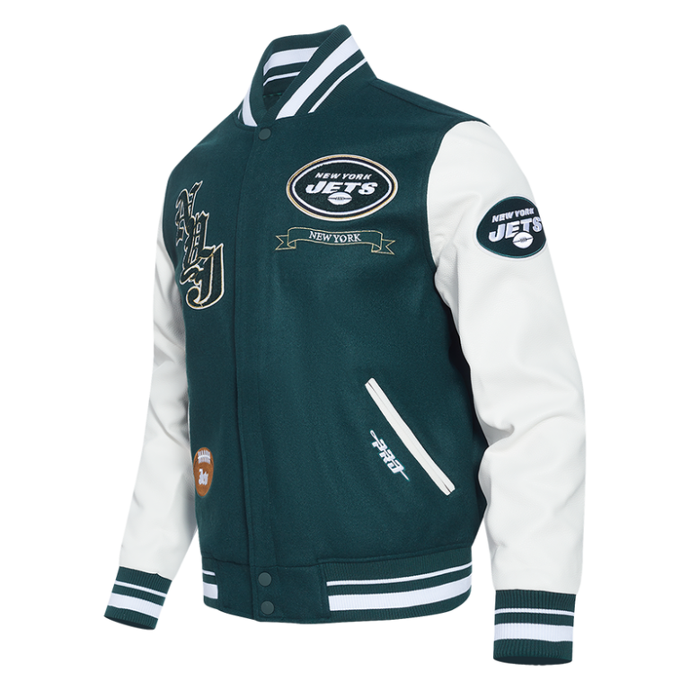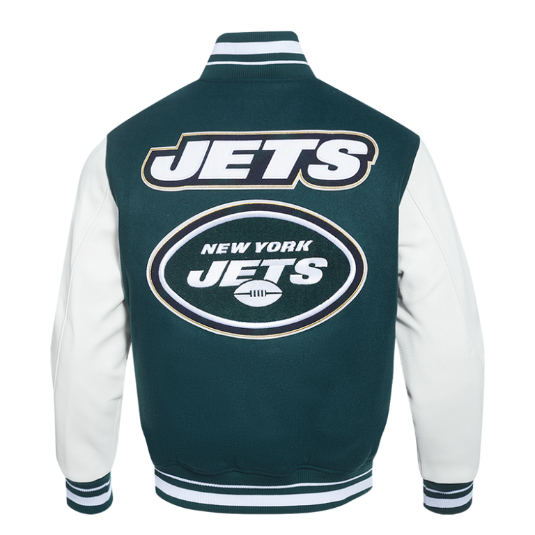 Upgrade your game-day style with the classic New York Jets Letterman Jacket. Designed with premium materials and bold Jets details, this jacket is a timeless piece for any dedicated fan. Stay warm, comfortable, and stylish while showing off your love for the Green & White.