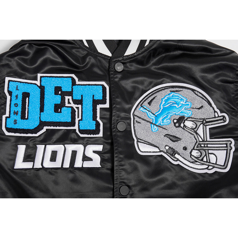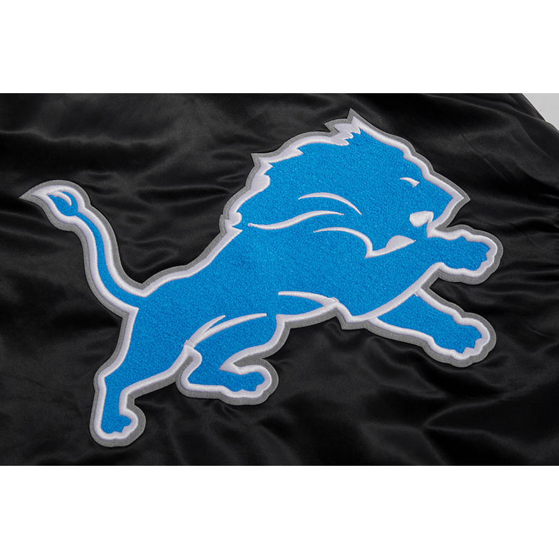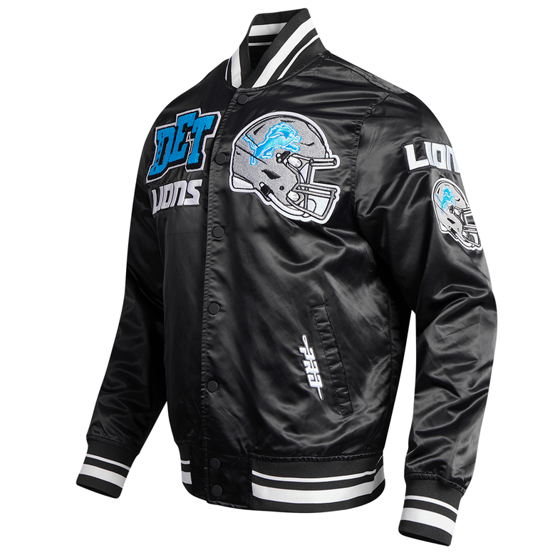 Represent your favorite NFL team in style with the Detroit Lions Mashup Varsity Jacket. This sleek and comfortable jacket is a must-have for any die-hard Lions fan. Featuring a classic varsity jacket design, it boasts eye-catching team graphics and a premium satin fabric.