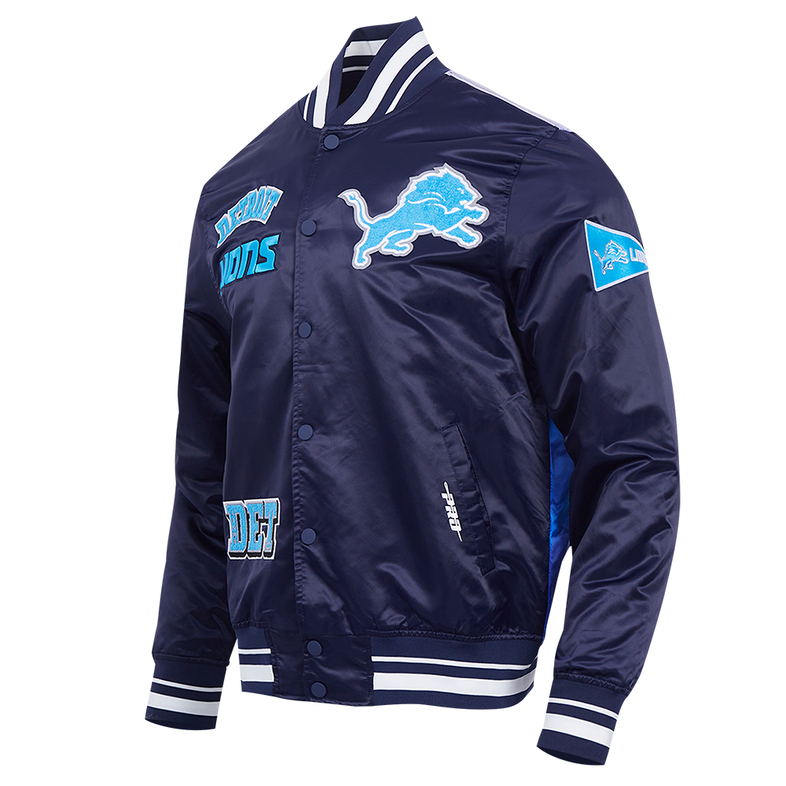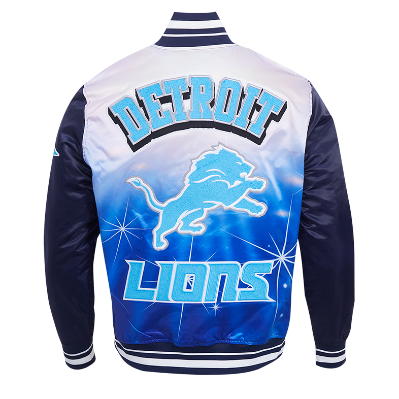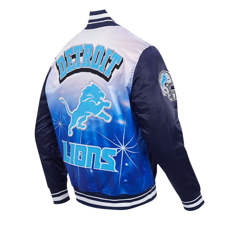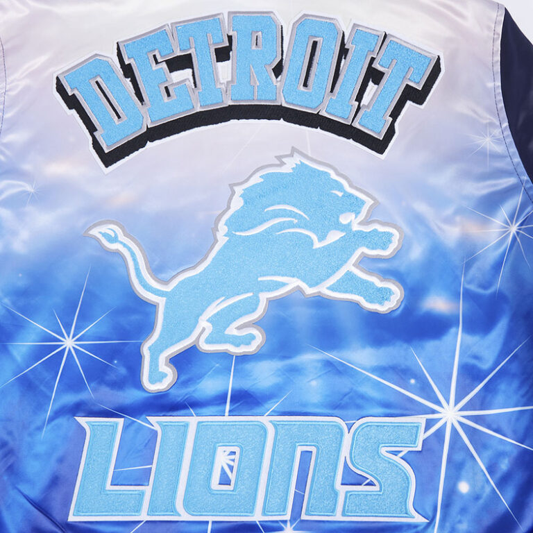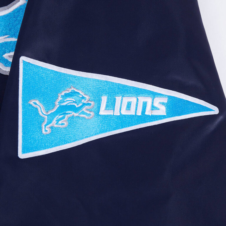 This Detroit Lions Satin Jacket is a must-have for any fan looking to combine fashion and team spirit. Crafted with a sleek satin finish, it features bold Lions patches and an iconic logo that proudly represent your favorite NFL team.