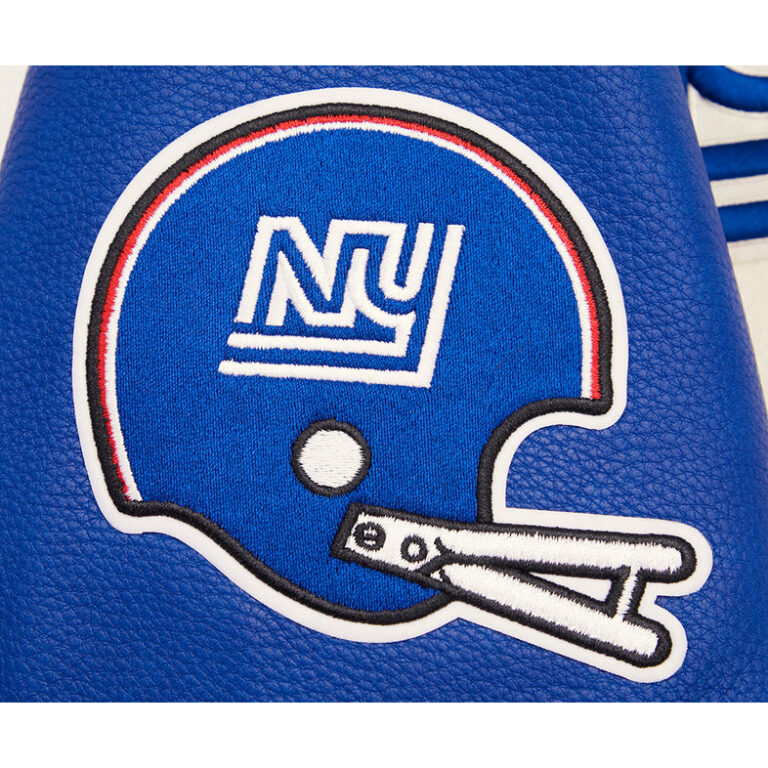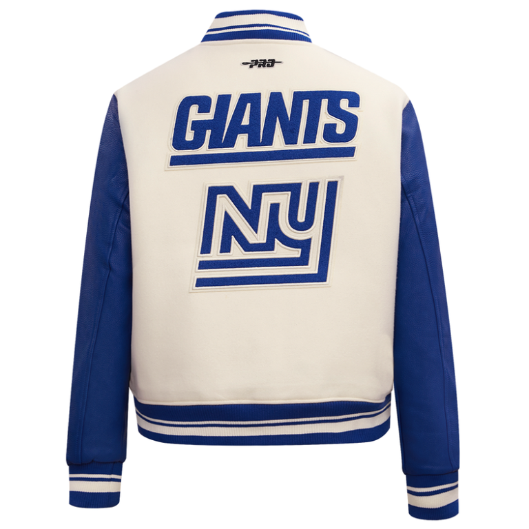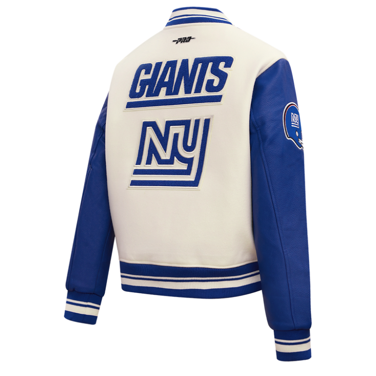 Stay warm and show your team pride with the NFL New York Giants Retro Wool Varsity Jacket. Crafted from quality wool and leather, this jacket offers comfort and style. The rib knitted cuffs and hems provide a snug fit, making it an ideal choice for any Giants fan looking to support their team in classic fashion.